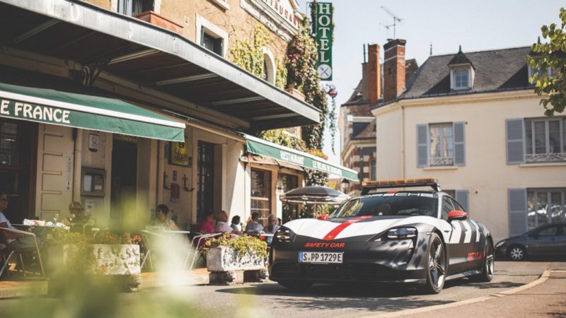 保時捷Taycan來到位於盧瓦河畔拉沙爾特(La Chartre sur le Loir)市鎮的Hotel de France進行拍攝,此為一間以服務利曼賽事期間的參賽選手而聞名的飯店。此地也是保時捷的經典畫面回顧之一,為1970年由Derek Bell及Jo Siffert所駕駛、且奪得當年利曼冠軍的Porsche 917 LH賽車,平靜地停放在Hotel de France前,等待運送到賽道,準備開始長達24小時的耐久征戰。
