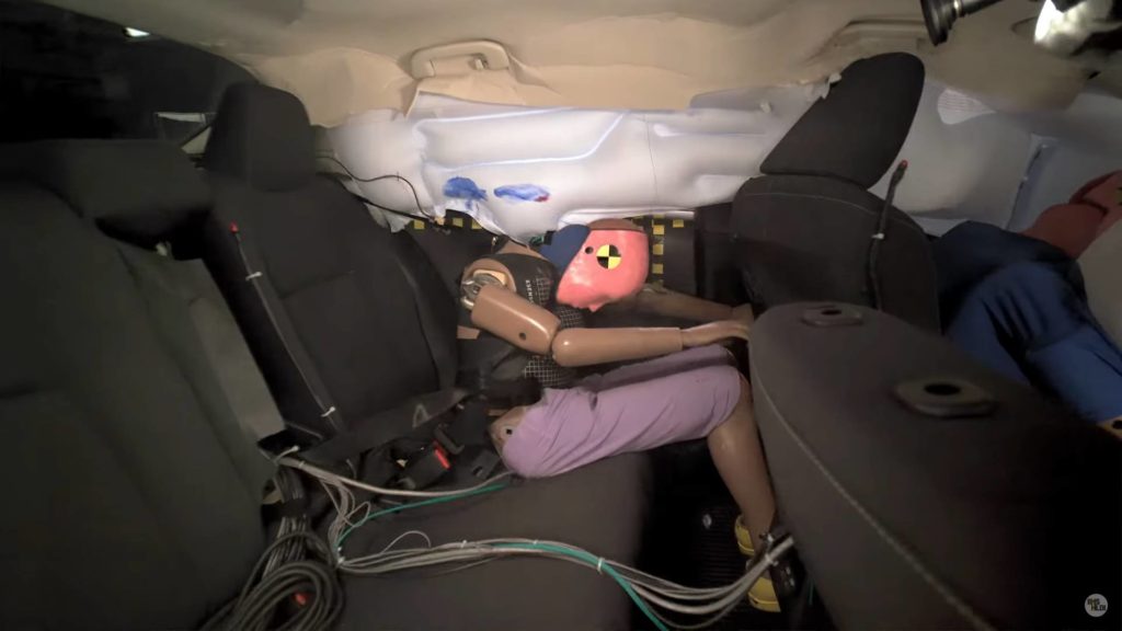 5輛車包含Honda Civic、Toyota Corolla、Nissan Sentra、第3代Subaru Crosstrek(與Kia Forte都進行了測試,在車體結構與前座駕駛人傷害指數與動態表現(是否有效被安全帶固定),基本上沒有什麼問題,幾乎都拿到Good評價(唯獨Nissan Sentra的駕駛人頭部傷害為Acceptable),但在後座假人的保護就突顯出一些問題了。