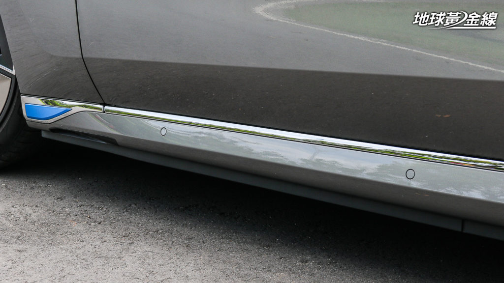如果,想要分辨i7與735i、740i等燃油7 Series之間的差異,就僅有外觀的些許細節可以辨識。在i7上,除了車尾的i7車明標示,還可以透過鑲嵌在雙腎水箱護罩上的BMW i品牌徽飾之外,BMW還在車頭下方使用藍色元素點綴,搭配前輪後方的藍色細節,還有後保桿兩側的藍色飾條,凸顯i7的潔淨電動車身分。