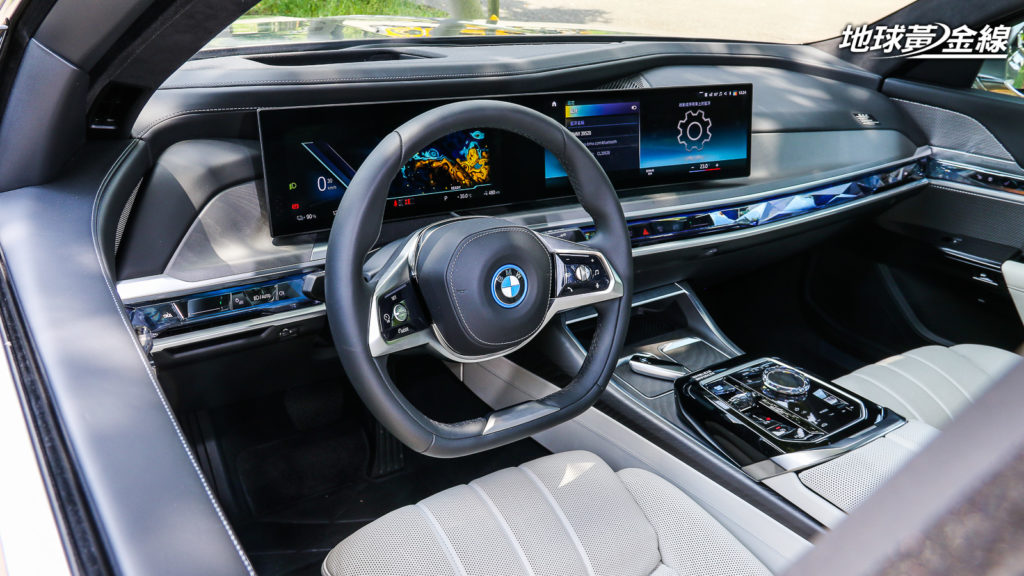 其他像是水晶鑲嵌頭燈、飾光水箱護罩、動態迎賓光毯、全車舒適隔音玻璃、前檔與側窗隔熱玻璃,還有21吋的空力式樣輪圈等,都與先前試駕的740i Excellence相同。BMW在新一代電動車布局中,已經不再強調獨特,而是融合進既有的車系當中,成為另一個動力選擇。