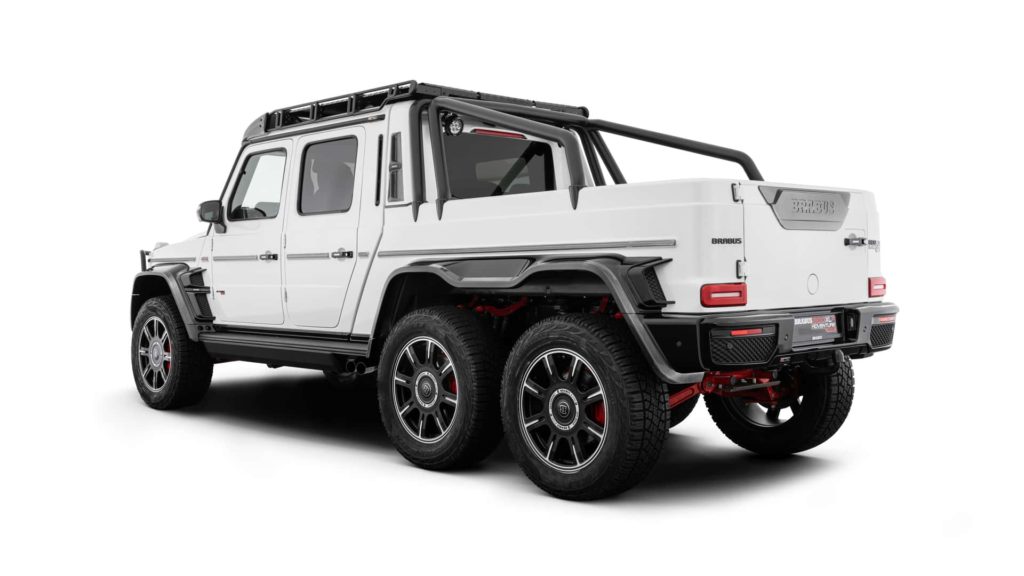 6×6 Adventure車上也配備有22吋Brabus Monoblock Z/HD輪圈,帶來強悍的視覺印象。Brabus當然也針對了外觀方面進行升級,帶來新的保桿、絞盤等設計,並且在全車也能見到大量碳纖維飾板,以及醒目的Brabus Widestar寬體套件。