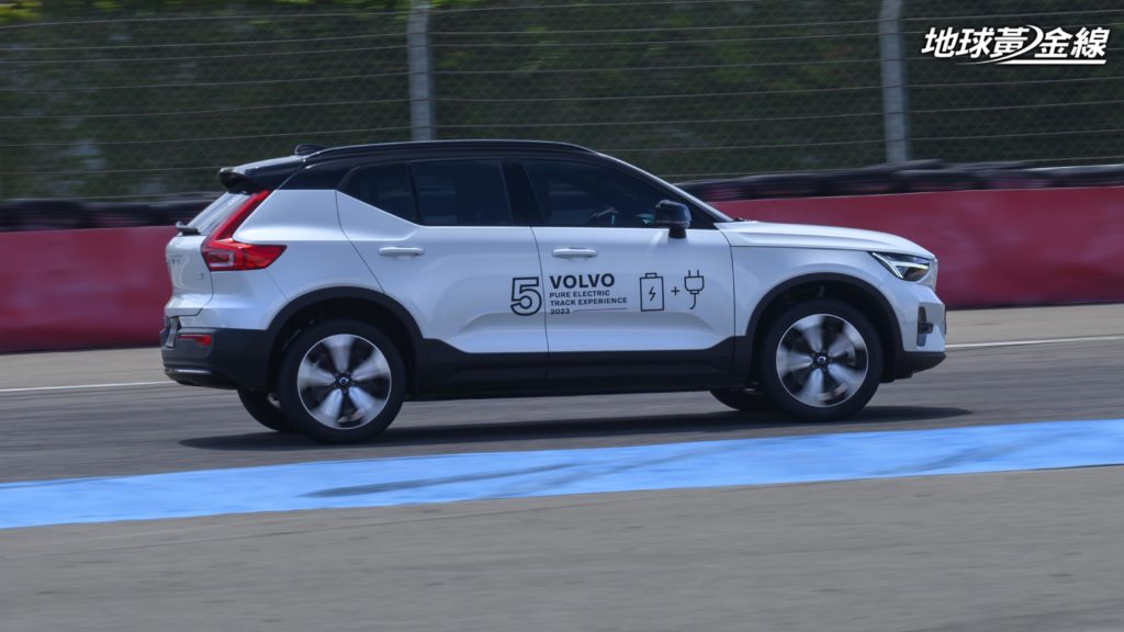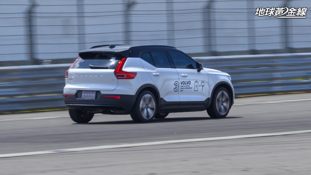 值得一提的是,在車頭對準彎道出口時瞬間踩下踏板,XC40 Recharge也幾乎不會遲疑,能夠即時給予加速力道,這讓我們開始對於這輛純電休旅有了一些不同的想法。也因為上述這些反應讓人更加好奇,如果嘗試以更快的車速進行這些動作,XC40 Recharge究竟能否招架得住?確實,電動車的電池配置能夠提供低重心的駕馭感受,但是這類車款的車重往往超過2噸以上,在麗寶賽車場當中面臨高低起伏的狀況,時而得俯衝而下,時而必須爬升向上,這時就必須得仰賴電控系統對於動態的修飾。