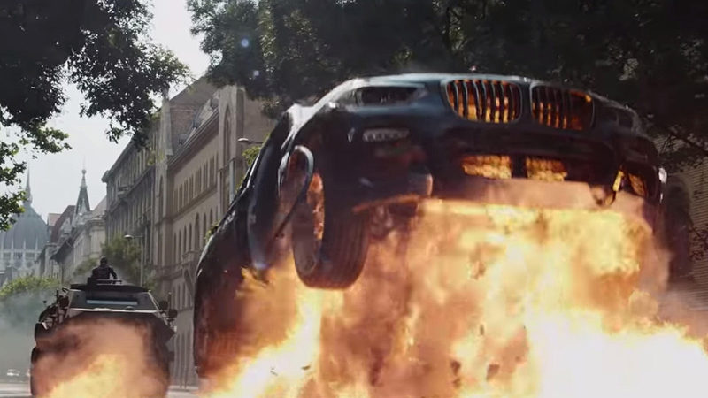 在幕後花絮影片裡面可以看出黑寡婦駕駛的X3遭受嚴重攻擊,畢竟緊追在後的不是一輛普通的汽車,而是輕型裝甲載具,能夠毫髮無損全身而退才是奇怪的事情。從這點也能看出,BMW重視真實場景重現,即使自己品牌的車被摧毀也不在意。