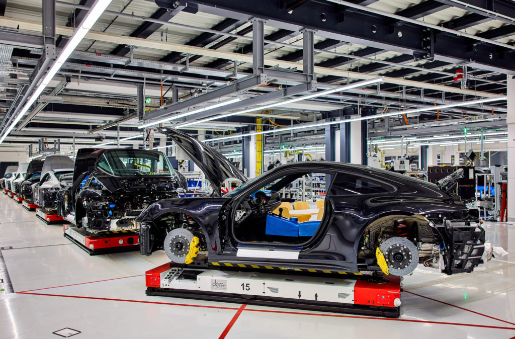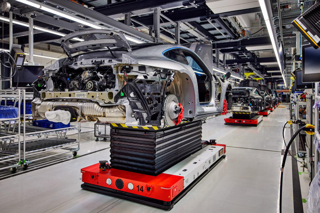 保時捷為整合全新生產階段,將擴建總廠雙門跑車產線區域,無人載具 (AGV)也將如Taycan 產線一般,用於支援生產雙門跑車。全新一代AGV 將彈性產線取代傳統的組裝產線,進而實現更有彈性的生產過程。這項升級措施對於未來在一條生產線上混和生產內燃機引擎汽車與電動車相當有幫助。