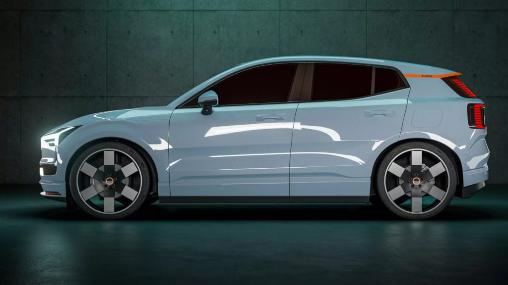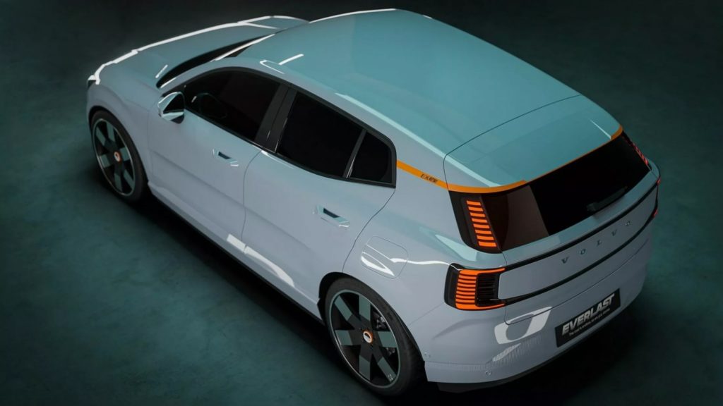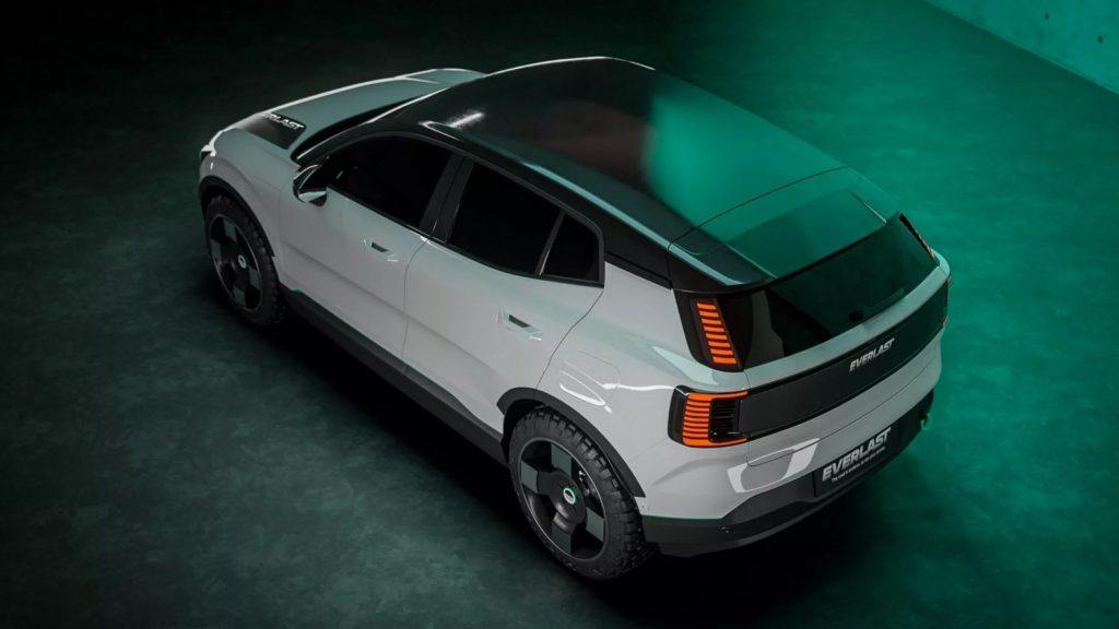 不過說到Outdoor風格的EX30,其實在新車去年中發表的時候Volvo就有展出一款粗獷外觀設定的EX30 Cross Country跨界休旅的跨界版,只不過目前這個外觀黑化、換裝全地形胎且車頂多了行李架跟備胎組的新車,可能要等到2025年的時候才會正式開賣,在這之前的EX30海外車主則是不妨考慮Everlast的Outdoor套件作為替代方案。荷蘭改裝廠推出的EX30月也封版本,同樣是將車頭水箱罩以及尾門中央位置施以黑化塗裝營造跳色風格,與此同時輪圈改搭自家出品的19吋/21吋十字造型鍛造輪框跟巧克力胎,車尾後保桿外露的拖車勾則是又添加了幾分粗獷氣息。