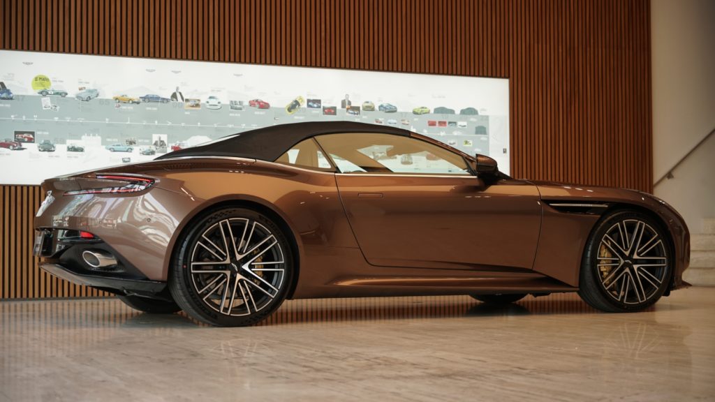 當然Aston Martin不會讓敞篷的身份而影響了一輛Super Tourer該有的車室質感,軟篷8層的隔熱材質帶來出色的寧靜度表現之外,收折起來僅260mm的厚度也盡可能縮小了結構對於行李廂空間的佔用,而不只車身塗裝可以選擇,敞篷也有黑 (標配) 以及紅、藍跟黑銀3種顏色可以選配。至於內裝方面,DB12 Volante標配了支援無線Apple CarPlay以及Android Auto的10.25吋觸控影音車機、11支揚聲器的Bowers & Wilkins音響系統,當然能夠彰顯車主個人風格的Q by Aston Martin客製化服務也沒有在這輛全新敞篷GT上面缺席。