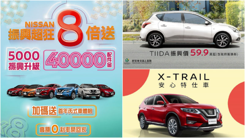 「Nissan振興超狂8倍送」活動期間自9月1日起至9月30日為止,對象鎖定在購買Nissan全車系國產車以及Altima與Juke兩款進口車車主,活動內容包含「5千振興8倍送」高額配件金、首年丙式車體險、高額分期0利率及5萬元舊換新政府補助優先領等優惠,國產車全車系另外再加碼68無限里程延長保固,讓買家能夠更輕鬆入主Nissan旗下車款。其中「5千振興8倍送」高額配件金,根據Nissan總代理裕隆日產提供資訊,買家購車時只要持5,000元振興券或者現金,就能購買價值40,000元之原廠選配件。