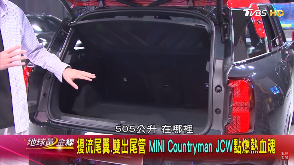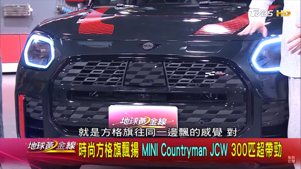 在《地球黃金線》節目中,主持人蘇宗怡與小愛深入探討了Mini Countryman JCW版的多方面特點。首先,車型的外觀設計延續了Mini的經典風格,加入了更多運動化的元素,如不對稱的水箱護罩、方格旗元素以及全黑化的外觀套件,讓車輛看上去更具運動感。