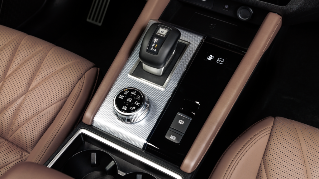 S-AWC四驅系統具備7種駕駛模式,包括Normal、Tarmac、Gravel、Snow、Mud、Power、Eco。懸吊系統經過調整升級,採用輕質高剛性鋁材製成,有助於減輕重量,增加舒適度與穩定性。而多連桿包括前下臂和後上臂都運用鍛造鋁來實現輕量化和高剛性。懸吊還整合了液壓式前下臂襯套,提供更高品質的乘坐體驗,另外,連煞車碟盤也同步加大至350mm,以增強煞車力道。