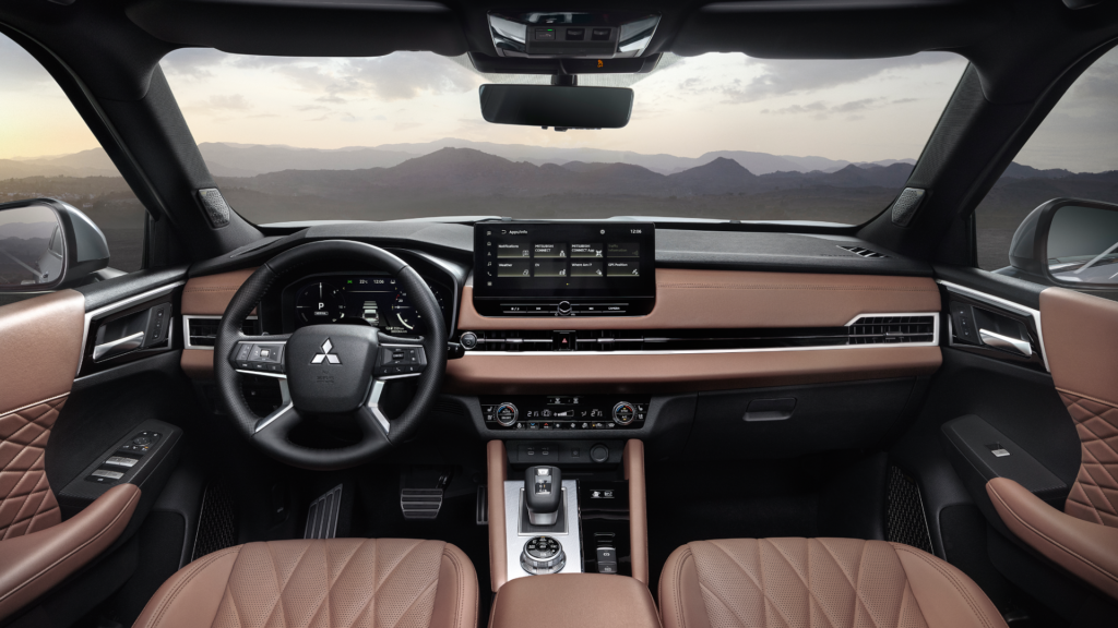 內部設計方面,小改Outlander PHEV鋪陳與舊款沒兩樣,但原廠展現了日本工藝的精湛和對細節的注重,通過材質和色彩的使用,營造出高品質與寬敞的氛圍。除了12.3吋數位儀表外,中控螢幕尺寸加大至12.3吋 (具備無線Apple CarPlay和Android Auto),三菱還與Yamaha合作,為新車量身打造了一套先進的環艙音響系統,依照車型等級差異,有8具揚聲器(Dynamic Sound Yamaha Premium)或12具揚聲器(Dynamic Sound Yamaha Ultimate),搭配Yamaha DSP擴大器,提供給乘客沉浸式的聽覺享受。