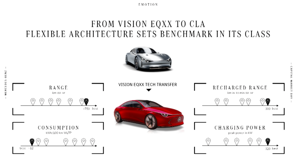 其中,新一代CLA車系將提供純電動力選擇,或搭載48V輕油電系統與四缸動力,並配備8速雙離合器變速箱。這些技術來自VISION EQXX計畫,將提升續航力、燃油效率與充電效能,並樹立同級新標準。CLA所屬的產品線也將由現行七款車型精簡至四款,以提高資源利用率。