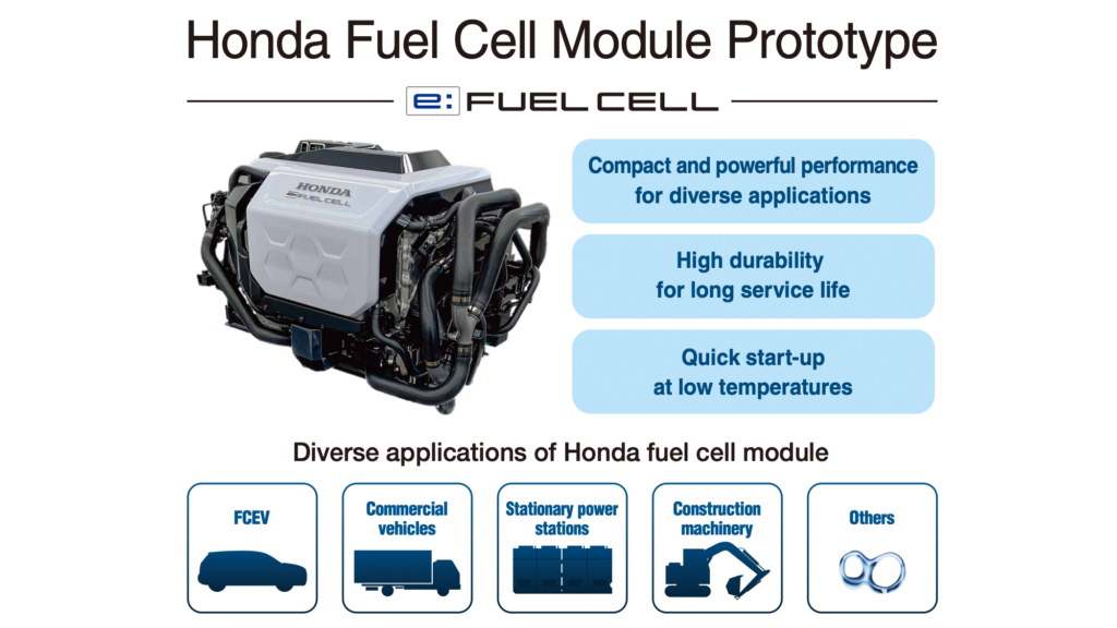 全新次世代燃料電池模組Honda獨立開發,基於與美國通用汽車(GM)共同開發的現行款基礎上再做進一步的改良,該模組具備150kW的定格輸出,實現更加小型化、製造成本減半、耐久性提升至兩倍以上,同時提高三倍以上的容積功率密度等優勢,有助於提升車輛與設備的設計靈活度。根據Honda的計畫,這款燃料電池模組將廣泛應用於燃料電池電動車(FCEV)、商用車、定置型發電設備與建設機械等領域,未來更希望擴展適用範圍與市場,助力打造可持續發展的能源社會。