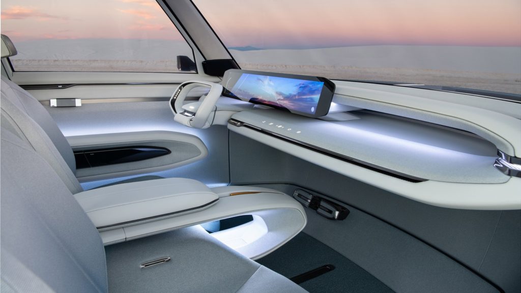 車內則是EV9 Concept重點所在,方正輪廓帶來的大面積車窗,搭配全景玻璃車頂,賦與EV9 Concept寬敞、明亮座艙,儀錶台區域以27吋曲面螢幕座為駕駛資訊讀取還有車內乘客多媒體資訊整合系統的顯示介面,還是控制音響、空調以及其他舒適化配備的管道。甚至,Kia表示,這組螢幕還可以協助車內乘客與虛擬世界連結,扮演現實世界與虛擬世界的窗口,就算是未來「元宇宙」時代也不落拍。