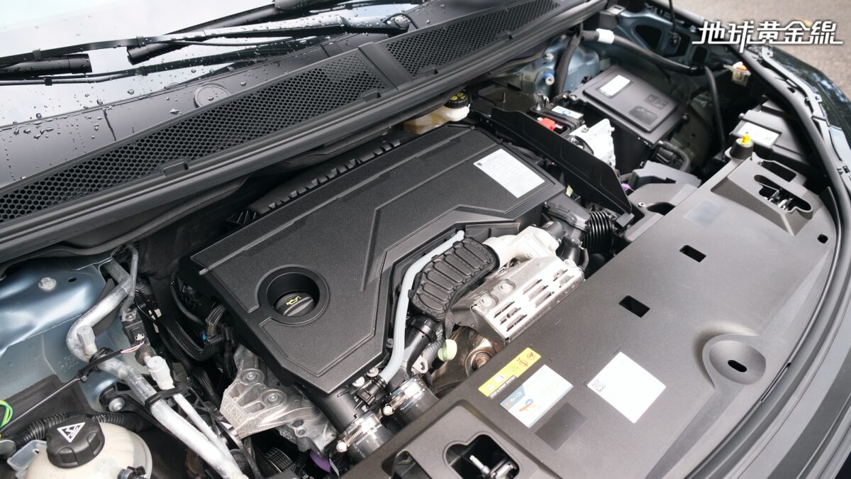 跟上回試駕的3008 Hybrid一樣,台灣導入的5008 Hybrid一律搭載P2 Hybrid油電複合動力系統,動力架構包含一具1.2升三缸渦輪汽油引擎、整合於6速雙離合器自手排變速箱的電動馬達,以及總容量約0.9kWh的48V鋰電池。雖然最大綜效輸出僅有145匹,但因為低速行駛有馬達輔助,加上引擎在1,750轉就能釋放出23.5公斤米最大扭力,起步時仍可帶來輕快的油門反應。