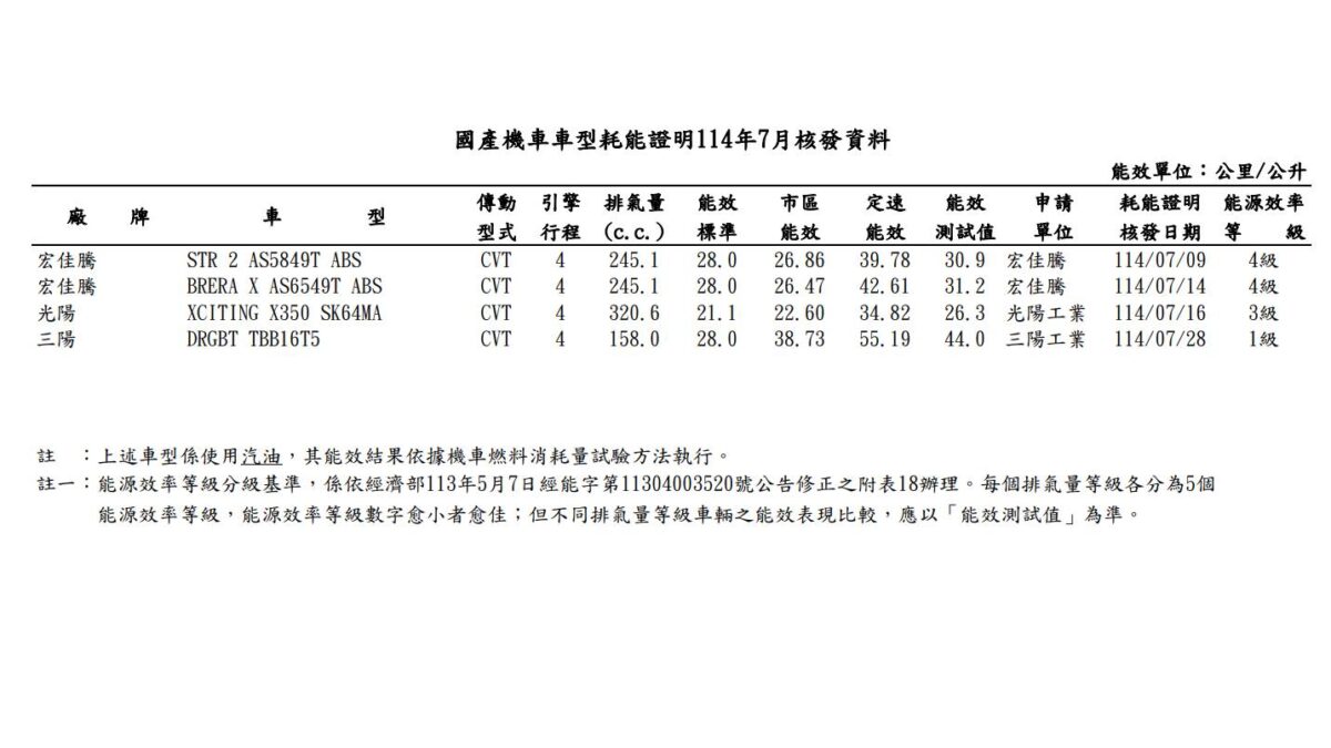 能源局2025年7月的國產機車耗能證明中,TBB16T5平均油耗來到44.0km/L,比舊款43.8km/L略為進步,定速表現達55.19km/L比現行款52.19km/L更提升,但市區油耗則略為下降,新車型測得38.73km/L,而現行款為39.58km/L。 - 可能新增ZRSG3.0系統?