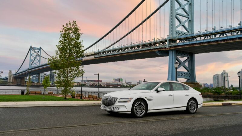 G80 Electrified於2023年式在美上市,外觀設計幾乎與燃油版G80相同,但動力系統換上87.2kWh鋰電池與雙馬達四驅配置,輸出365ps馬力與71.3kgm扭力,EPA測得續航里程達約453km,實測高速巡航續航也達約451km,並支援最高191kW快充,平順安靜的動力輸出與燃油版相似的豪華氛圍,讓它在產品力上並不遜色。然而,由於平台原為燃油車設計,後座腿部空間與行李廂容量較受限制,實用性不及傳統燃油版。