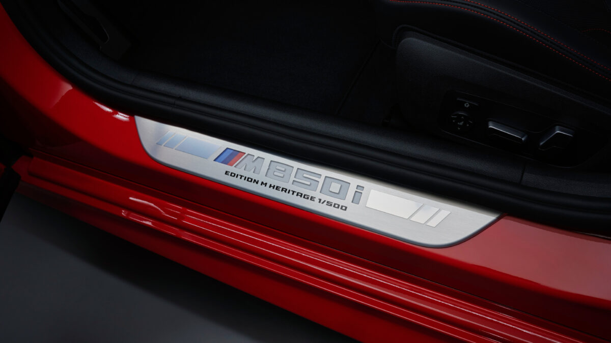 走入車室空間,M850i Edition M Heritage採用了M運動化座椅,且在座椅之上運用了大量的美利奴 (Merino) 皮革還有Alcantara材料,同時在儀錶板、頂篷還有車門飾板也使用Alcantara材質來妝點,而且在諸多位置中都可見M三色縫線。另外,中控台則有霧面碳纖維材質,配上帶有優雅氣息的玻璃檔把與控制按鍵,置杯架與車門門檻還有「M850i Edition M Heritage 1/500」身分銘牌。BMW強調,這些設計在其他8 Series車型沒有機會擁有。