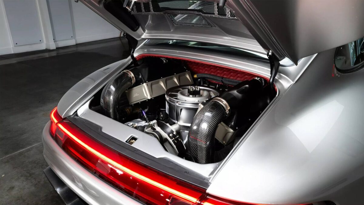 F-26的心臟來自Gunther Werks與Rothsport Racing共同開發的4.0升雙渦輪水平對臥六缸氣冷引擎。這具引擎搭載賽車技術衍生的「平式風扇(flat fan)」,能比傳統垂直風扇提供兩倍氣流,確保在高負荷下依舊擁有穩定冷卻效率。輸出數據同樣驚人:最大馬力高達1000ps,峰值扭力達103.6kgm,搭配六速手排與限滑差速器,動力僅傳送至後輪,徹底延續純正駕駛體驗。值得一提的是,官方指出1000ps是使用高乙醇燃料時的數據,若使用一般93辛烷值汽油則輸出將有所下降。不過,即便如此,其性能依舊遠超一般超跑範疇。