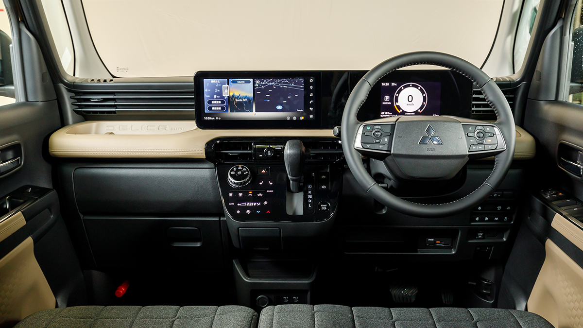 Delica Mini得益於重新設計的車體線條,A柱角度更為垂直也變得更細,駕車視野變得更為寬闊。再者,由於經過調整的A柱設計,車內空間得以拓展115mm,乘車舒適度因此進一步提升。另外在用車體驗上,這款車也導入數位儀錶板,並在中控台換裝基於Google開發之AAOS系統的12.3吋娛樂顯示螢幕,支援Google Assistant智慧助理,能夠以語音方式完成氣溫、導航或音樂等操作,並有無線Apple CarPlay、Android Auto功能。