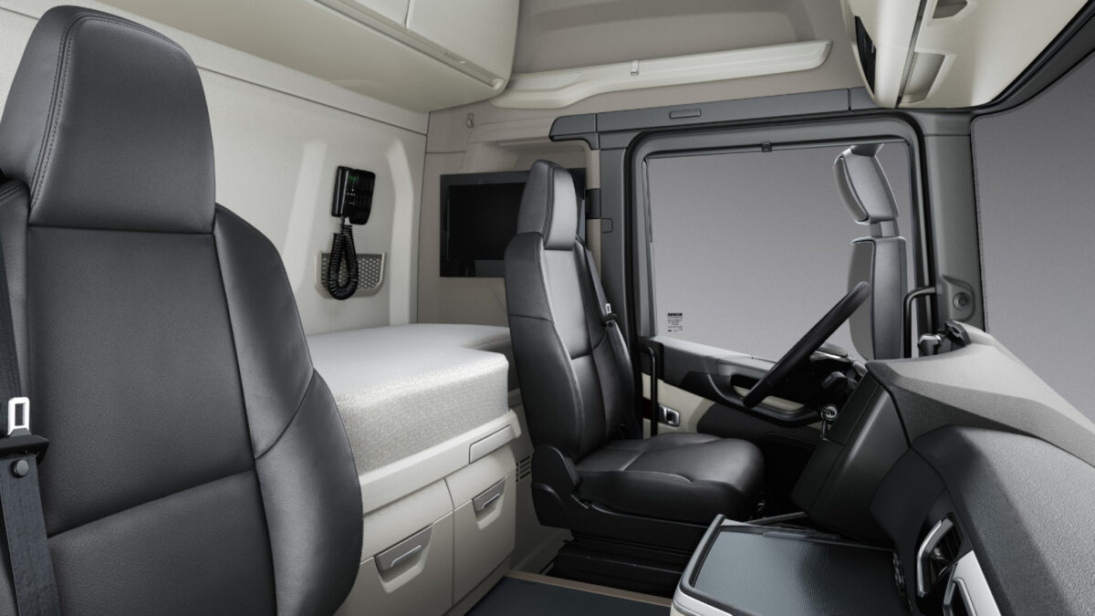 Scania Super提供全氣壓懸吊車型,賦予駕駛人最舒適的行駛體驗,降低震動及噪音,並有效保護貨物。旗艦巡航頭等艙R車廂,擁有果嶺式走道和最寬敞的車室空間,打造最佳舒適感。EAS電子液壓轉向方向盤功能,使操控更順暢省力,減少路面影響,採人體工學的設計有效減低駕駛疲勞。