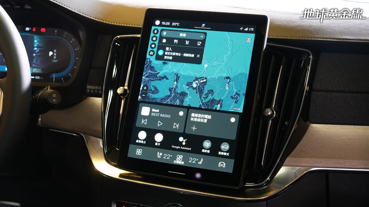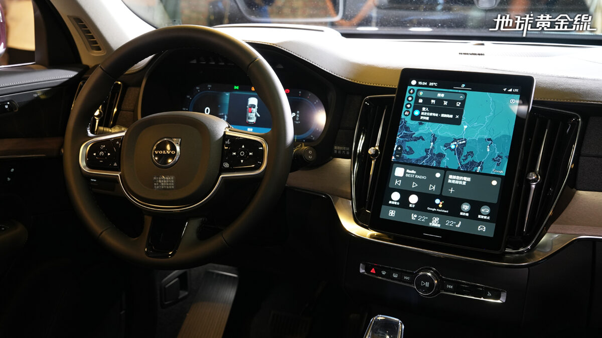 內裝鋪陳亦為XC90改款的一大重點,進入車內最先發現地就是全新的中央觸控螢幕,尺寸從之前的9吋提升到11.2吋,整體面積提升了55%、螢幕像素亦提升21%,可謂是視覺上的有感升級。同時,原廠也為其導入了新一代的軟硬體內容,透過Google開發的AAOS系統,讓使用操作更為流暢。由於中央螢幕重新設計,改為懸浮式呈現,兩側的空調出風口造型也因此調整,變為直立式模樣。
