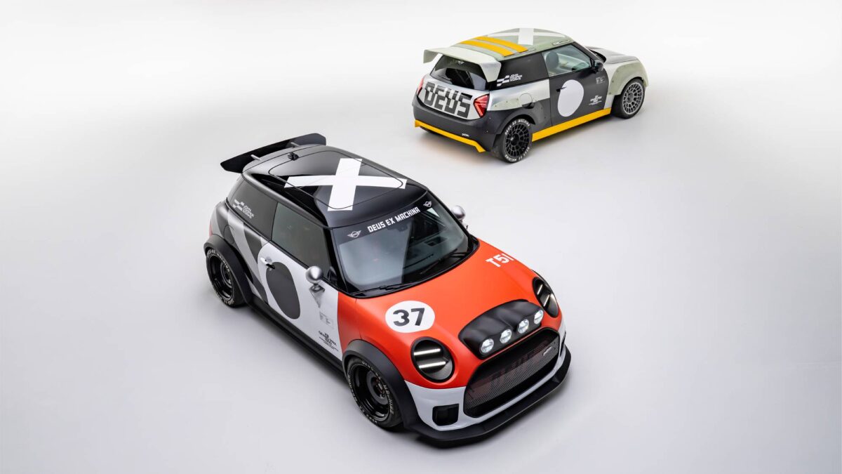 這兩台車的外觀塗裝由藝術家Matt Willey設計,他曾於2022年攜手Deus為經典Mini打造特製賽車塗裝,此次再度合作,從歷史賽車塗裝汲取靈感,融入幾何元素、鮮豔色彩與象徵性的「X」標誌,讓兩車既各自獨立又彼此呼應。