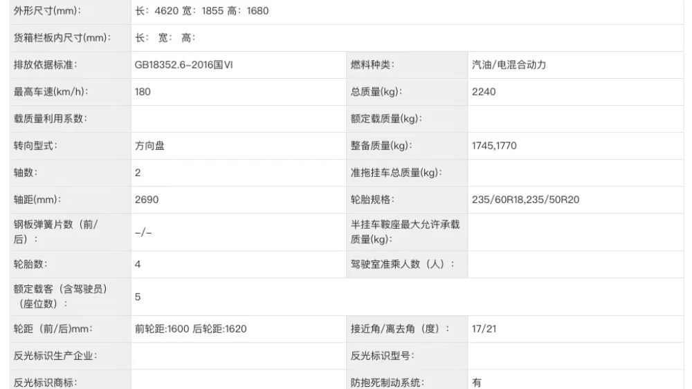 從申報資料來看,一汽豐田RAV4並不像廣汽豐田Wildlander,延續標準設計的Core造型,而是採用另一種比較豪邁的Adventure造型,不過跟海外版本相比似乎少了專屬車頂架跟隱藏在進氣壩內的LED燈組,輪圈則有17吋、18吋、20吋三種規格,對應的輪胎規格分別為235/65 R17、235/60 R18、235/50 R20,另外還有雙色車身也就是搭配黑色車頂/後視鏡的選項。