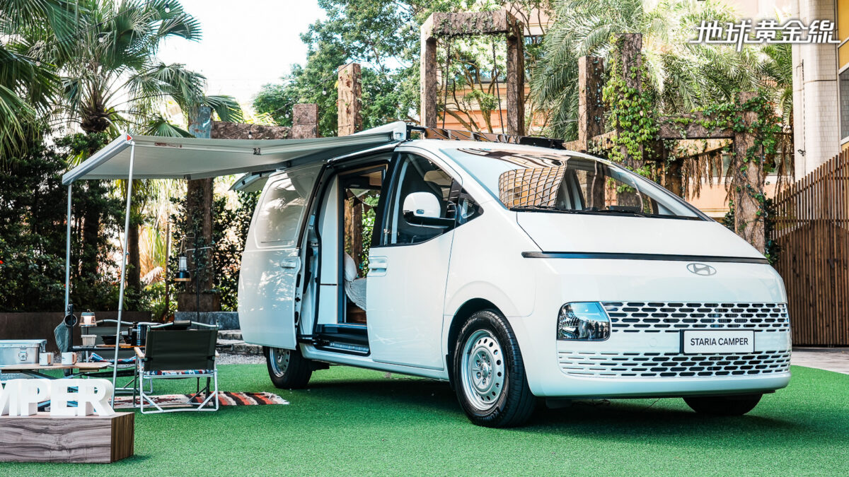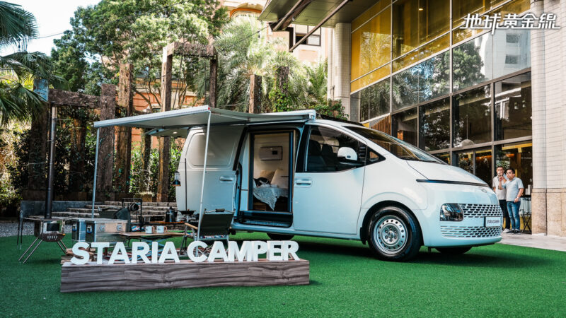 鎖定露營車市場的Staria Camper由Hyundai總代理南陽實業與輔康企業合作開發,運用Staria Van為基礎,運用其貨艙空間量身打造露營居住區。同時,安裝經過認證的車頂架、車邊帳,並合法變更行照車高,無需擔憂後續相關驗車問題。售價150.4萬元的Staria Camper豪華款及標配雙人舒適沙發床組、雙側木製收納櫃、露營用摺疊桌、尾門蚊帳、車側兩用紗門與防焰耐磨地板等配備。