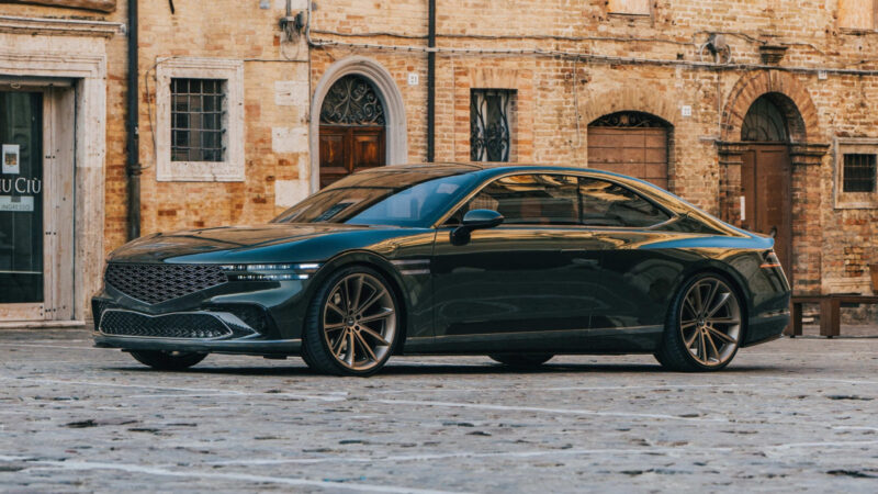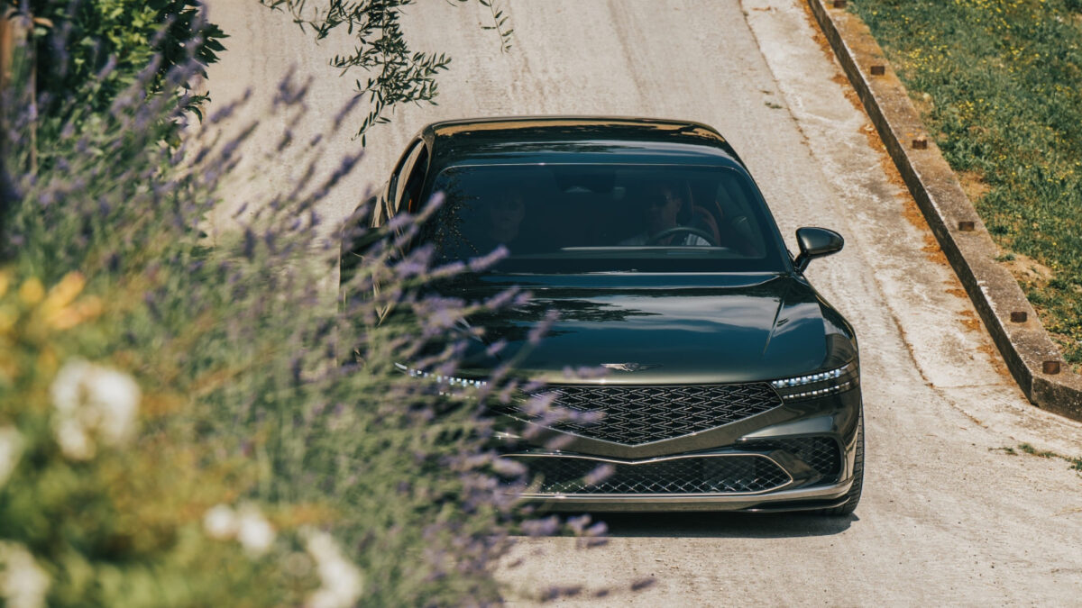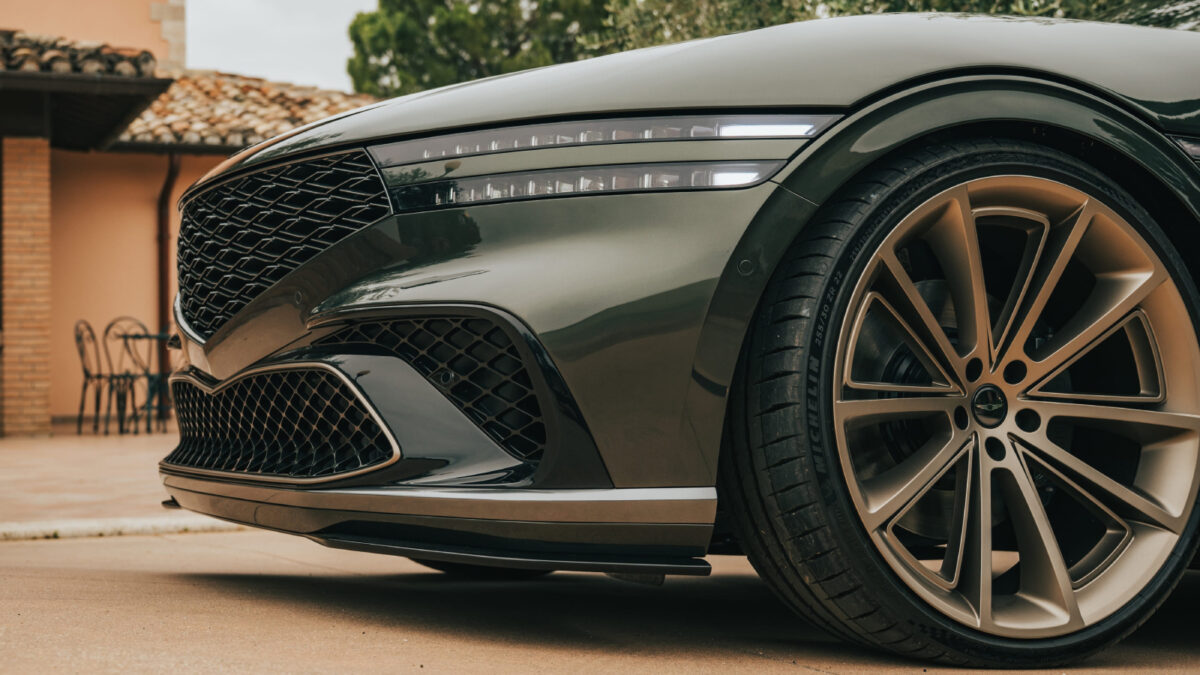 這款車的外觀顏色源自品牌旗艦G90,當它與意大利東部馬爾凱地區的古老橄欖樹和連綿的葡萄園背景相襯時,彷彿一顆光彩奪目的寶石。這片地區以其柔和起伏的丘陵和恬靜的景致著稱,X Gran Coupe Concept就如同將這些自然之美濃縮在車身上,展現出令人驚艷的光輝。
