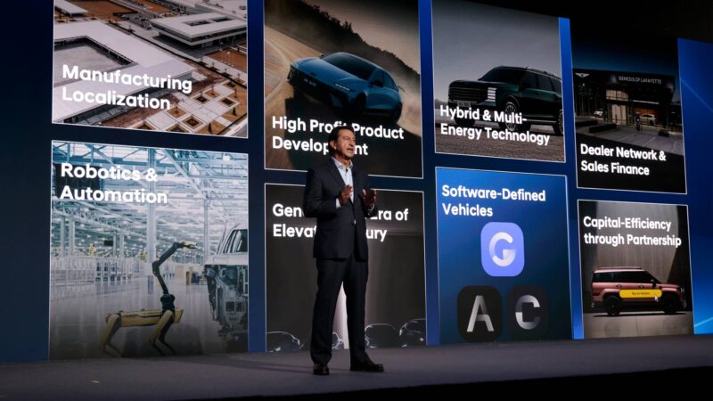 Hyundai目標到2030年全球總產能再增120萬輛,美國市場銷售車輛有八成以上將實現在地生產,供應鏈本地化比例亦將提升至八成。美國喬治亞州HMGMA工廠到2028年達到年產能50萬輛,新增3,000個就業機會,投資額27億美元,專注於油電與純電車型,並在印度浦那、沙烏地阿拉伯、越南、北非等CKD工廠產能皆有所提升。Hyundai於南韓蔚山新建電動車專廠,最多可生產12款電動車型,年產能達20萬輛。