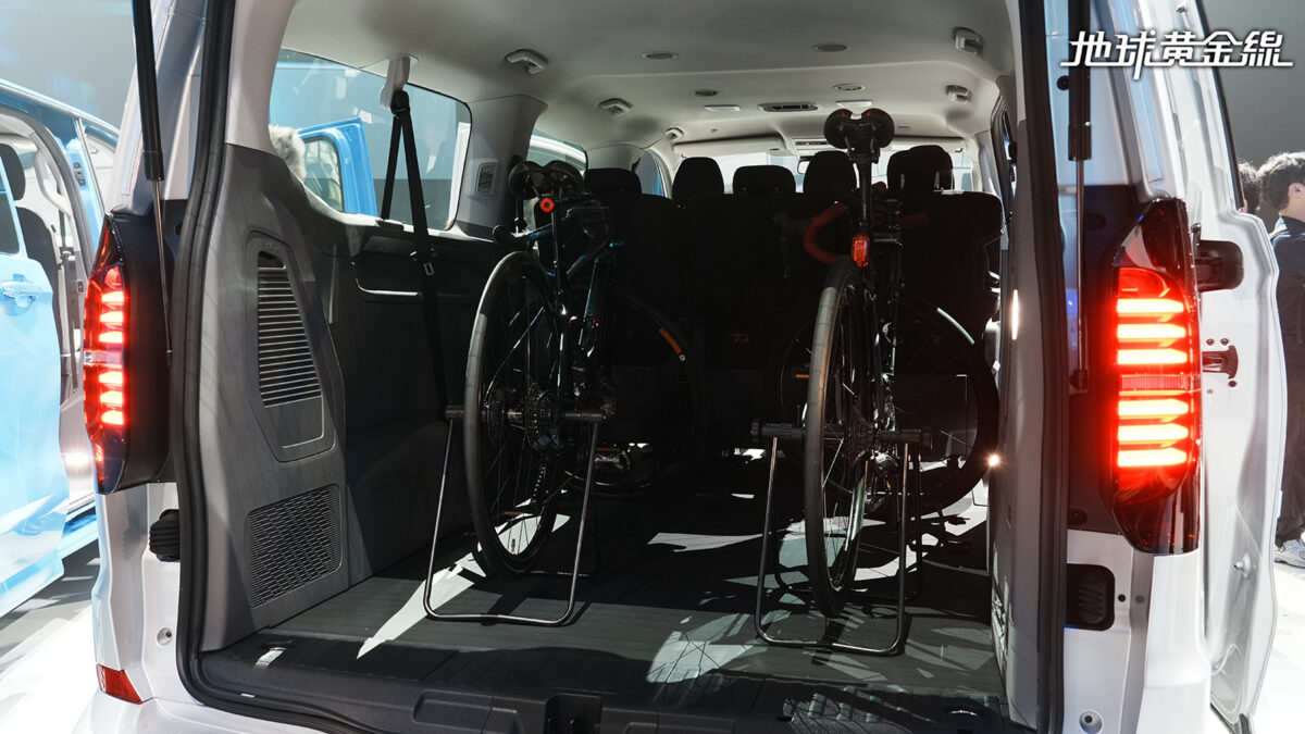 內裝鋪陳上,全新Caravelle車系亦有所進化,採用12吋數位儀錶板搭配中央的13吋多媒體觸控主機,在車內具備8組USB充電插孔、12組杯架等實用機能同時,副駕駛座前方更有雙儲物空間,最大化車內的空間運用機能。而在現場展示的Caravelle車型,足以放入兩輛單車,同時第三排座椅、第二排座椅也具備收折機能,使其富有更寬裕的載物表現,可達5,472公升水準。