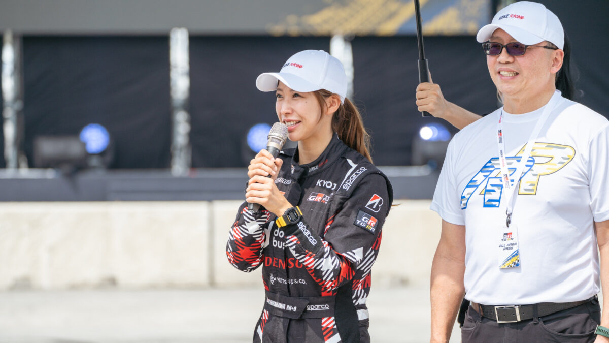 特別演出由平川真子駕駛GR86揭開序幕,副駕竟驚喜現身和泰汽車總經理蘇純興。隨後Morizo火力全開,副駕座由和泰汽車董事長黃南光陪同。兩位重量級嘉賓親身體驗賽車速度,成為場邊最熱議話題。