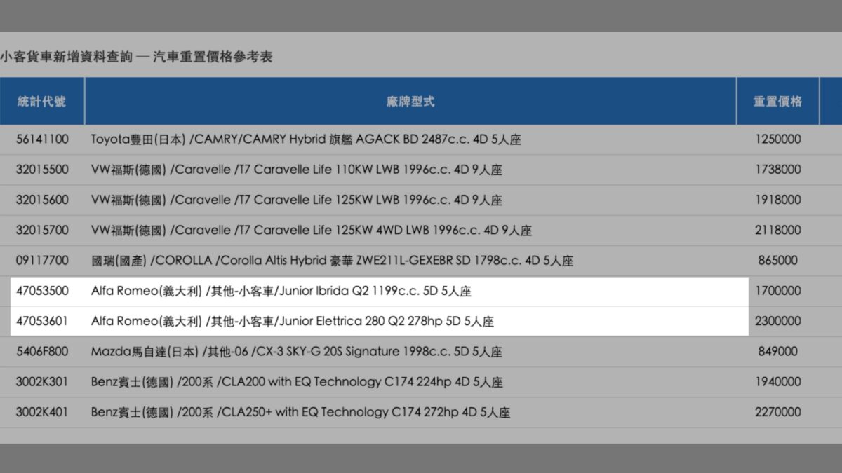 不過,根據最新的保發中心資料顯示,除了油電車型之外,寶嘉聯合似乎也在評估導入純電性能版本的可能性。文件中出現了兩款車型名稱分別為「Junior Ibrida Q2」以及「Junior Elettrica 280 Q2」,重置價格分別為新台幣170萬元與230萬元。前者預料延續同樣的1.2升P2 Hybrid系統,而後者則為Alfa Romeo品牌所推出的前驅高性能純電車款。