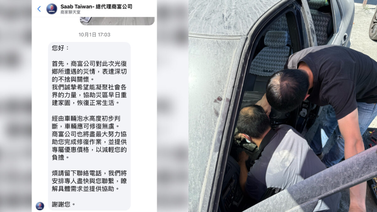 「這台車已經是家的一部分。」車主說道。面對滿車泥沙,他一度以為車輛已報廢,但仍決定嘗試挽救,並聯絡SAAB台灣總代理商富汽車。考量到距離遙遠、拖車業者可能不願意前往,並預估將車輛從花蓮運回北部的費用高達2萬元以上,商富決定親自前往現場搶修。10月8日清晨6點,商富汽車派出兩名技師,從新北土城總廠出發,跨越半個台灣前往花蓮光復。