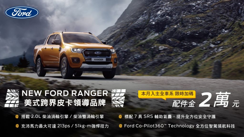 另外,Ford Ranger車系也於12月推出限時加碼專案,入主Ford Ranger職人型(售價104.8萬)、全能型(售價119.8萬)或運動型(售價149.8萬),可享配件金2萬元優惠。