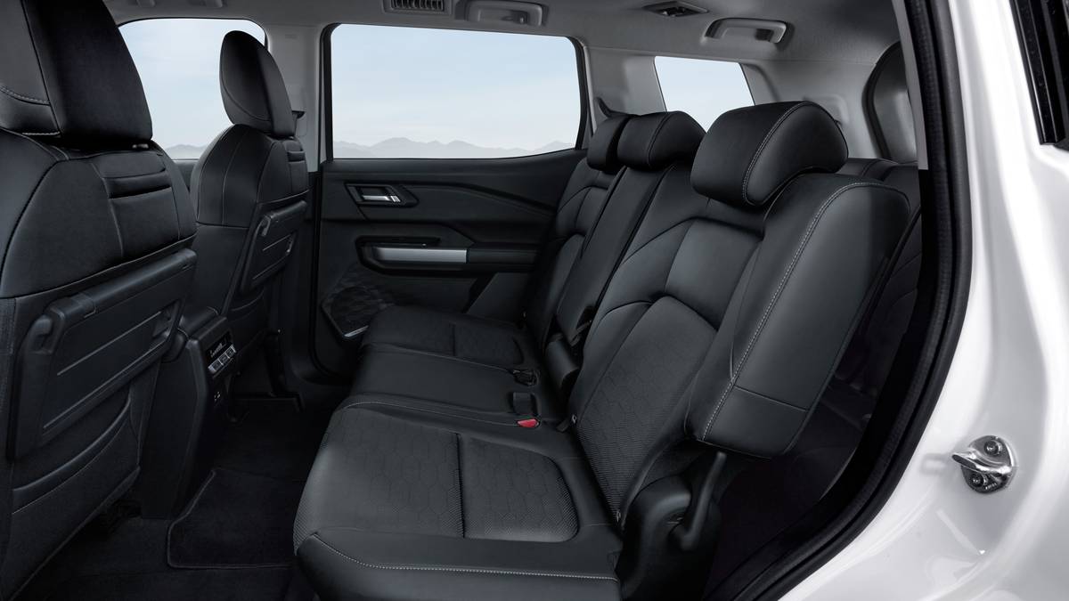 車身尺碼為4,680 x 1,840 x 1,780mm,軸距達2,815mm,明顯比Xforce更長,接近現行Outlander水準。內裝以8吋數位儀表搭配12.3吋中央觸控螢幕作為科技核心,並導入Yamaha環繞音響系統,提供更高質感的娛樂體驗。三排七人座佈局採2-3-2配置,第二、三排座椅均可傾倒,能靈活轉換乘坐與行李空間,強調家庭實用取向。
