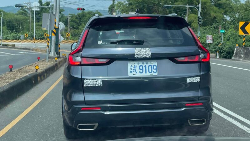 該名網友表示,該張間諜照是在台3線旗山往內門方向拍的,雖然僅有正車尾的角度,且Logo與車標都被貼起來,但從貼紙凸起的痕跡來看,除了左下角應該仍是「CR-V」字樣外,右下角車標看來並非現行的「VTEC TURBO」,所以很可能為「e:HEV」的銘牌,也就是過去許多人敲碗的CR-V油電版。