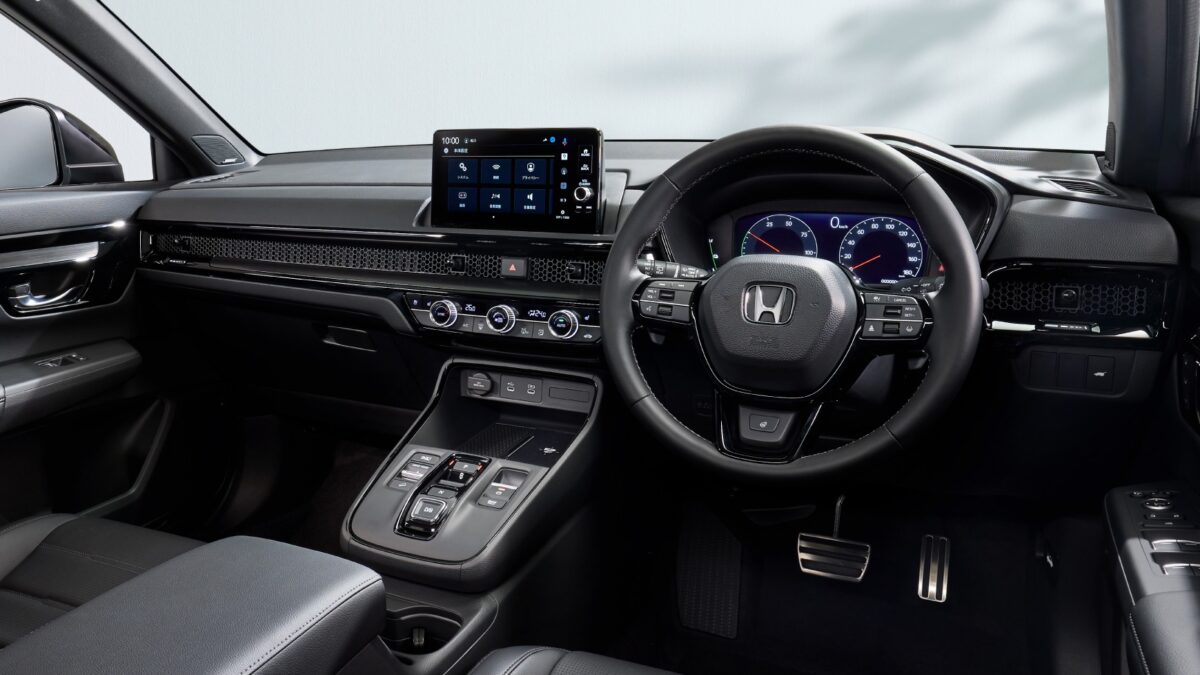 車內同樣以黑色為主軸,加入大量的黑色亮面飾板,並提供全景式電動天窗、金屬踏板組、9吋多媒體中控螢幕、10.25吋數位儀表、手機無線充電座、Bose音響系統等配備,傳統排檔桿在e:HEV油電車型則是改為按鍵式線傳排檔系統。