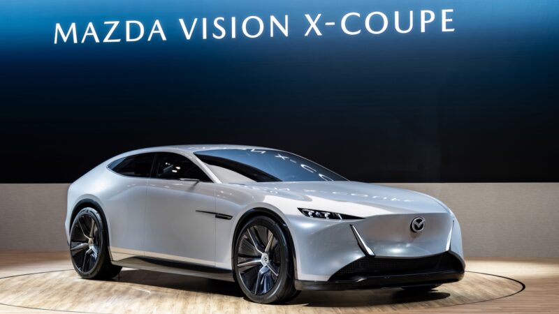 Mazda Vision X-Coupe以全新進化的「KODO魂動」美學語彙,其跨界轎跑的身形以流暢的線條勾勒力量與優雅兼具的比例,展現品牌一貫對動態之美的極致追求。