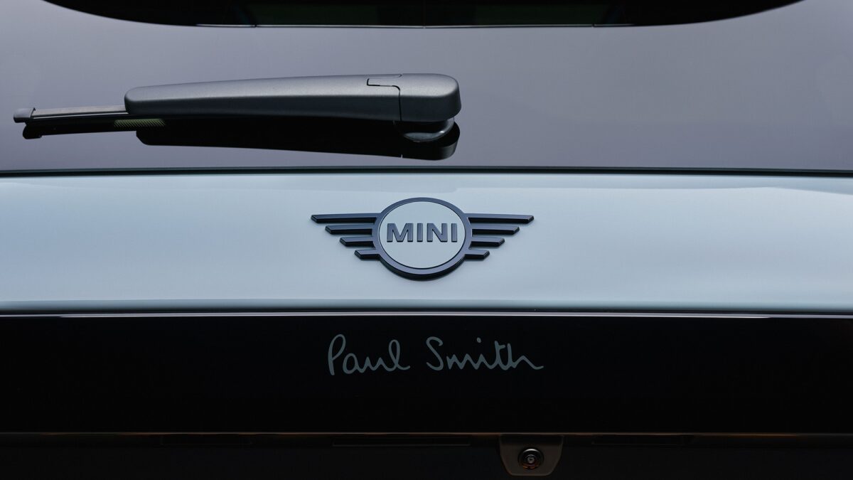 以Statement Grey、Inspired White、Midnight Black Metallic三種車色構成主要基調。此外,專為本車創造的Nottingham Green象徵Paul Smith的家鄉,成為此次合作的核心色彩,這抹綠色貫穿後視鏡蓋、八角形水箱護罩框線、輪圈中心蓋與品牌徽飾細節,更可作為其中一種對比式車頂選項,另一版本的Jet Black車頂則以霧面與亮面交錯的黑色條紋構成,呼應設計師的低調優雅。不論車頂選擇為何,Paul Smith經典的「Signature Stripe」條紋皆低調地延伸於駕駛席後方的車頂,搭配前後MINI徽飾換上全新Black Blue雙色設計,尾門飾條上還刻有Paul Smith親筆簽名,細節中盡顯創作者的幽默與自信。