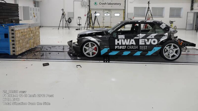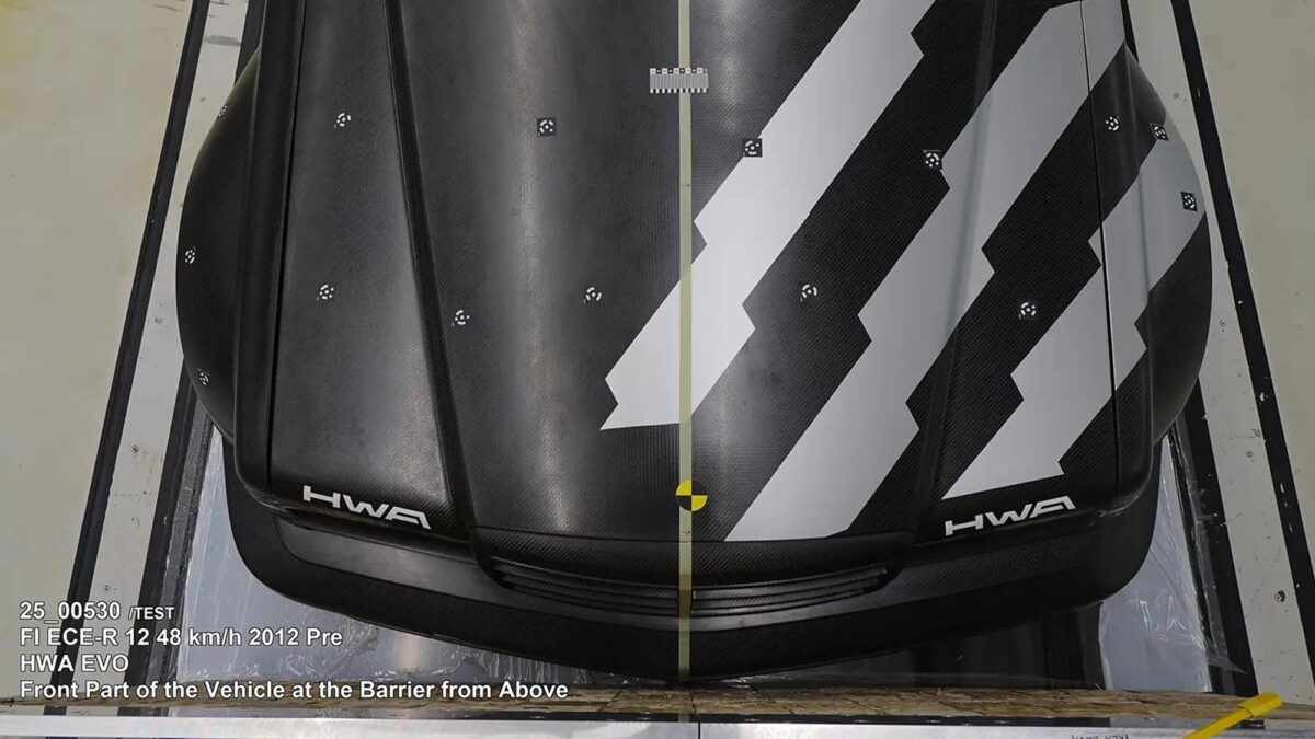 測試項目包括:50 km/h正面撞擊試驗、雙向加速與座椅固定測試、安全帶拉力試驗與ISOFIX兒童座椅固定點驗證、後排座椅背壓測試與剎車、排放系統檢驗,總計超過60項完整測試均順利通過,顯示車體結構完整性與工程設計水準達量產車等級。HWA技術長Gordian von Schöning強調:「我們將EVO視為全新車型開發,以與主流車廠相同的嚴謹標準檢驗,這些撞擊結果證明我們對品質與創新的承諾。」