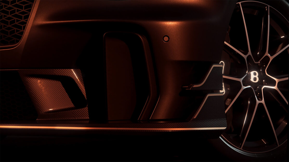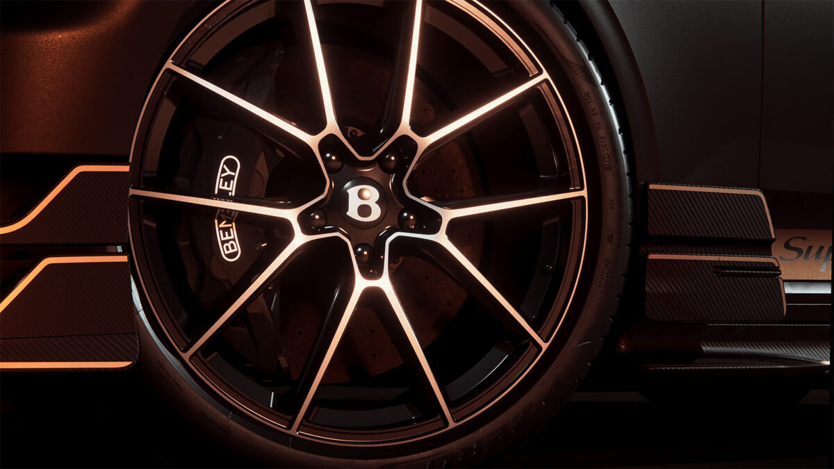 Continental GT Supersports同時將植入更具視覺張力,同時也更加競技化的碳纖維空力套件。從影片中可見,Continental GT Supersports重新設計車頭空力導流佈局,並有更突出的垂直導流氣道設計,甚至在前保桿兩側還植入雙層導流小翼。配合碳纖維空力側裙、大尺寸雙色式樣輪圈、跑車化煞車卡鉗等,同時在前門下方點綴「Supersports」字樣,凸顯Continental GT Supersports不凡身份。