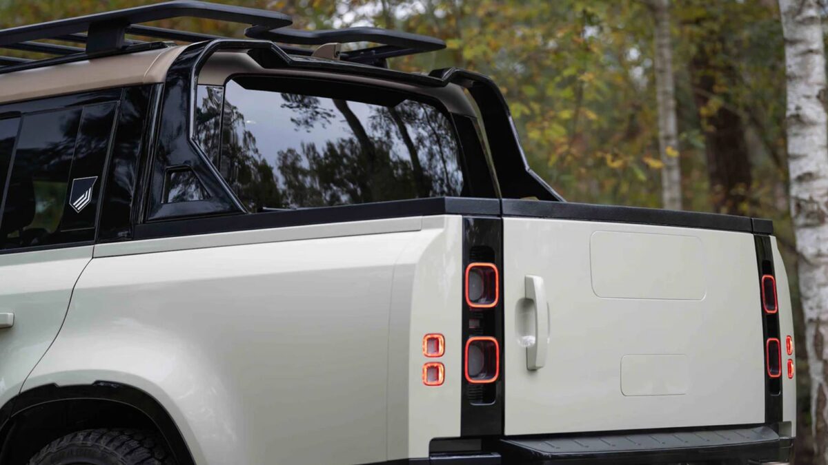 Heritage Customs表示,Valiance Pick-Up的設計靈感源自品牌過往的Convertible專案,延續手工訂製精神與Defender經典輪廓,這項「半手工訂製」專案以Defender 130為基礎,經過深度結構改造,後艙上半段被重新切割並打造出全新貨斗,使其搖身一變成為四門皮卡的獨特存在。