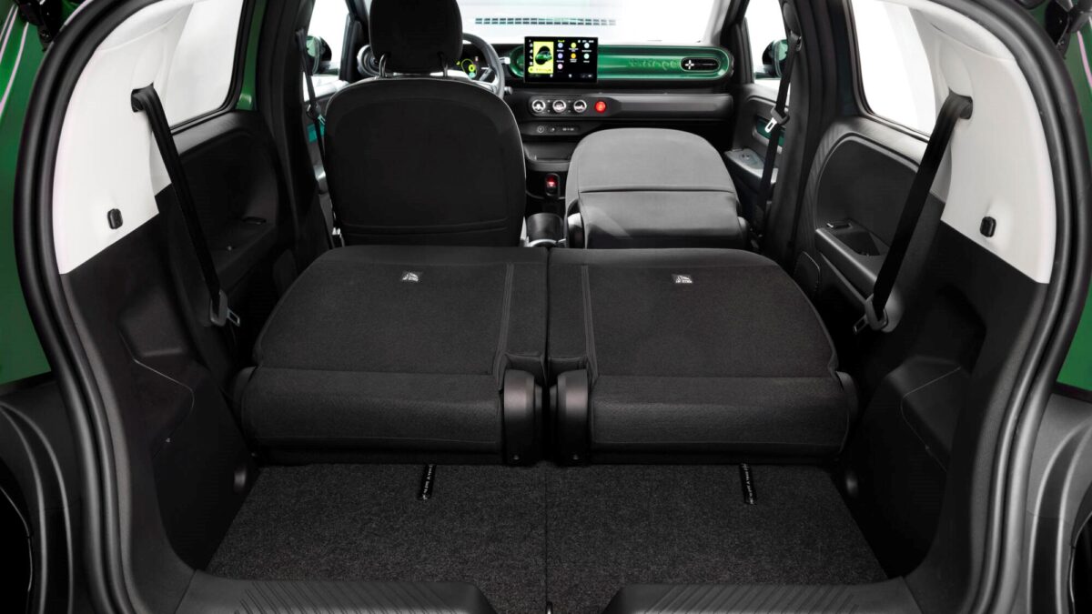 儘管都是屬於A-segment小車,但Twingo跟Inster一樣擁有魔術大空間,兩張可獨立前後滑動的後座椅,滑移距離長達170mm,可依照不同需求擴大後座腿部空間或是將空間分配給行李廂。因此Twingo的行李廂容量有360公升,如果把後座完全打平還可擴充到1,000公升,已經能夠媲美中型掀背車,甚至連副駕駛座椅背都能往前打平,方便將滑雪板等長條形物品裝進車內。