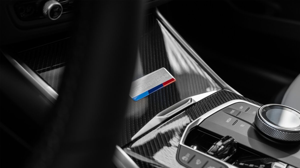 進入車艙後,專屬細節更進一步彰顯其限量版身分,內裝採用BMW Individual Merino真皮包覆,提供黑與白兩種配色選擇,並搭配碳纖維飾板與金屬細節點綴,中央鞍座上可見「3 Series 50 Jahre Edition」專屬銘牌,門檻踏板亦有對應字樣,進出之間皆能感受紀念車的獨特氛圍。配備方面維持M340i的高規格設定,包含M款三輻式多功能方向盤、紅色12點鐘方向標記與換檔撥片,進一步強化駕馭的運動感,這些細節由BMW Individual部門親手打造,象徵著品牌半世紀以來對駕馭樂趣與工藝美學的堅持。
