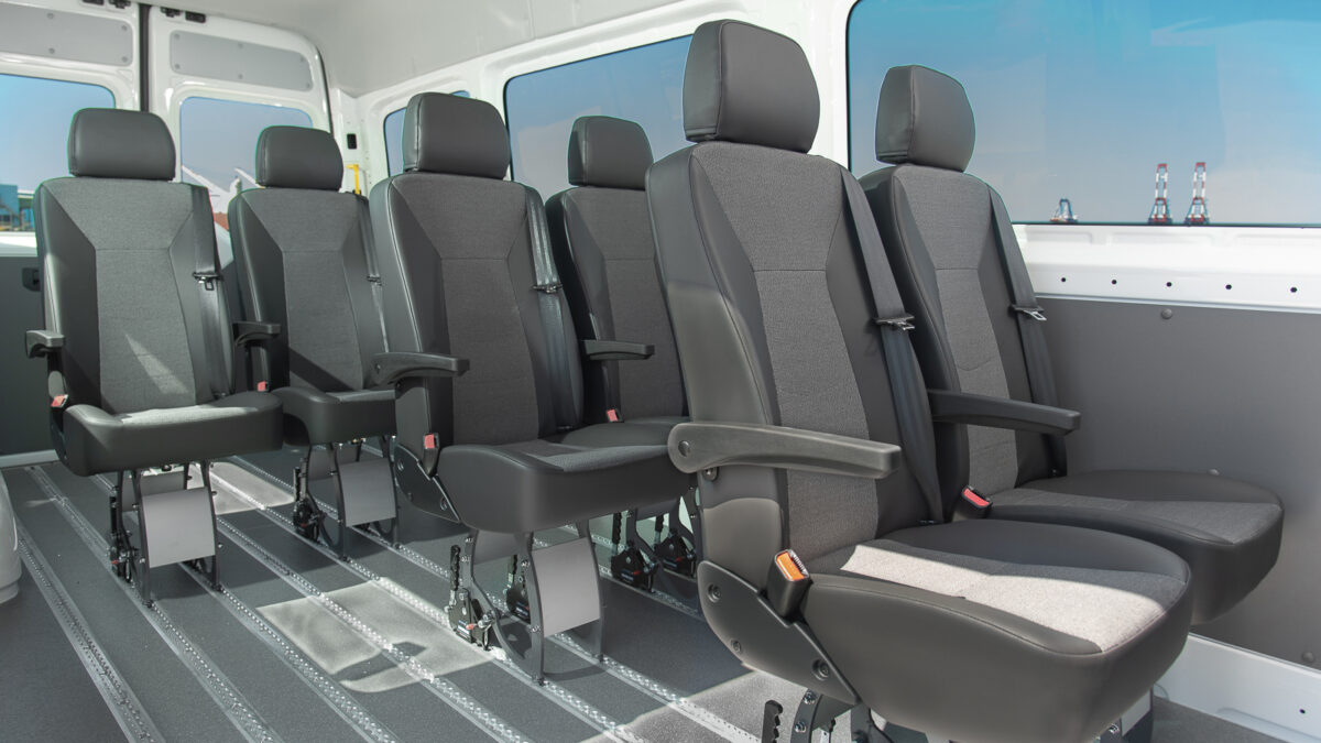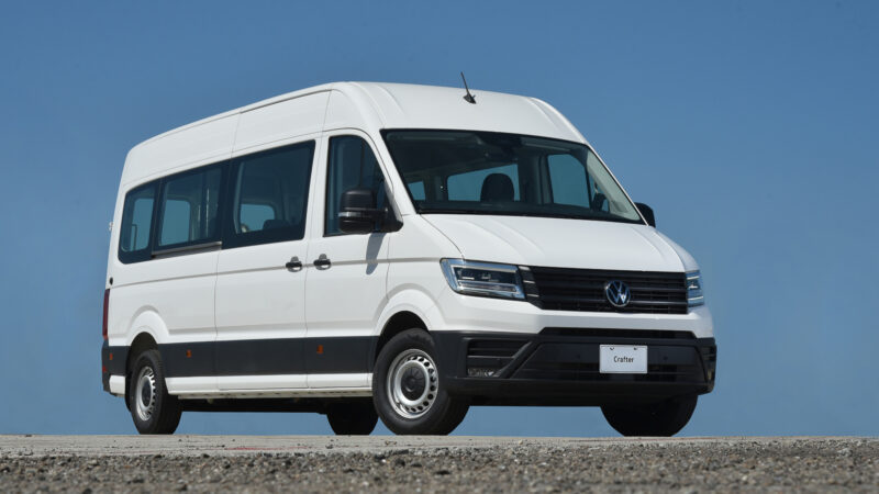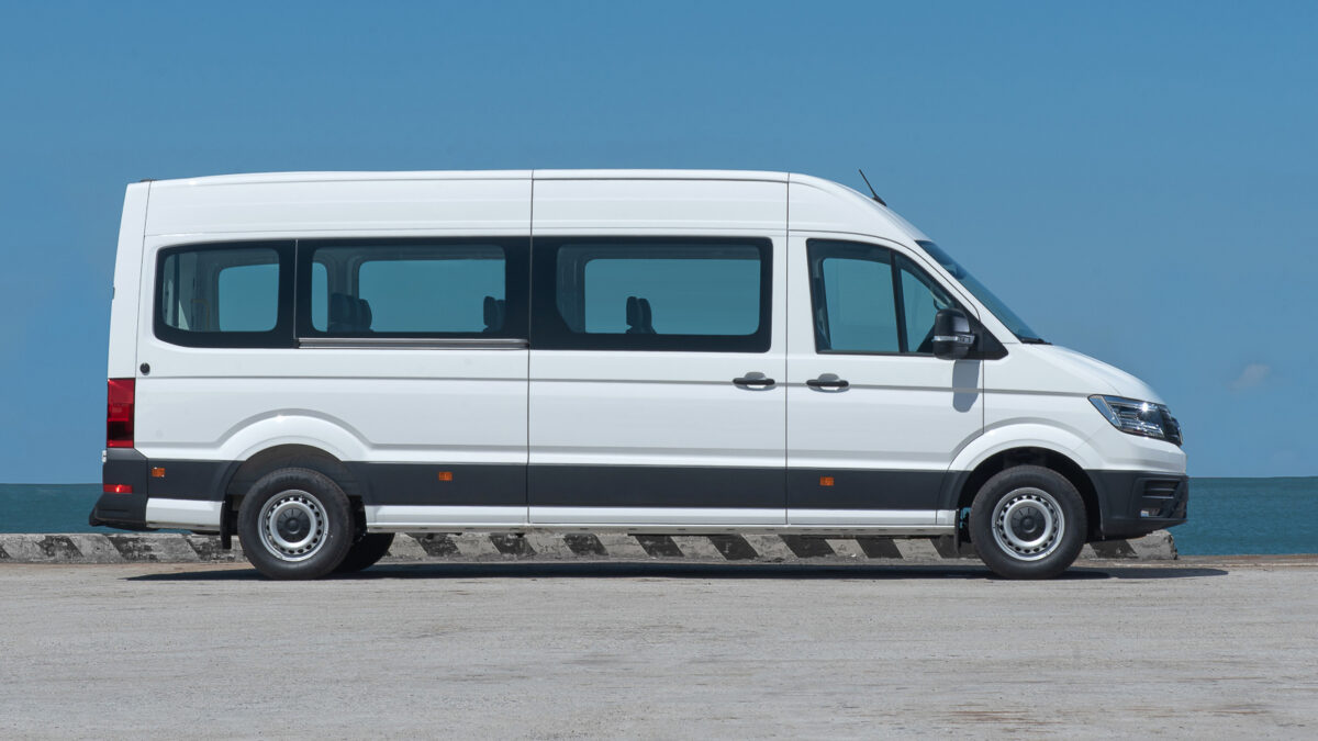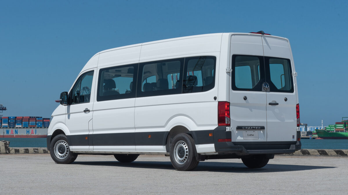 Crafter的9人座客車版車型外觀尺碼數據為車長6,836mm、車寬2,040mm、車高2,590mm以及軸距4,490mm,挑高車艙內部具有可以讓成人輕鬆站立的空間,福斯商旅再透過Smart Floor鋁合金滑軌機構,能夠讓買家依照不同需要,於容積達14.4立方公尺後艙空間中自由規劃座位位置。且僅設定9 人座位,並將車輛總重控制在3,500公斤之內,可領取「小客車」牌照,即便持有普通小客車駕照也能夠駕駛。