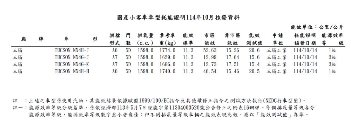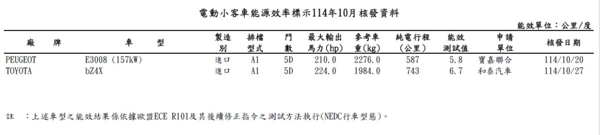 Peugeot總代理寶嘉聯合即將佈局電動車市場?先前在保發中心的揭露下,傳出大改款5008有機會追加搭載純電動力的「E-5008」,近期在能源署公布的電動車能耗測試資料中,大改款3008的純電車型「E-3008」也赫然現身。同一時間公布的燃油車油耗測試資料,則是揭露了Hyundai Tucson L客車版油耗,包括1.6升渦輪汽油、1.6升渦輪油電兩種動力,總計送測四款車型。