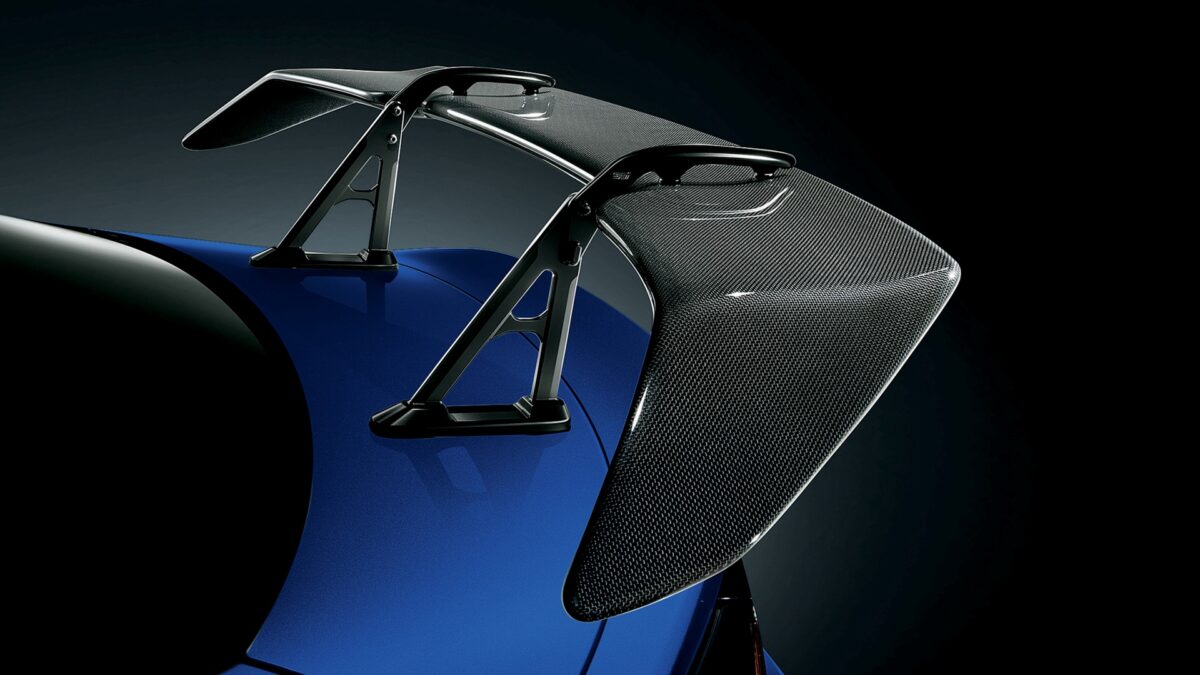 外觀部分,除了STI前下擾流板、STI後側下擾流板、STI雙邊單出排氣尾管,BRZ STI Sport TYPE RA還仿效BRZ CNF賽車,加裝碳纖維材質製作的大型尾翼,不僅能營造視覺張力,高速行駛下也能強化操控穩定性。