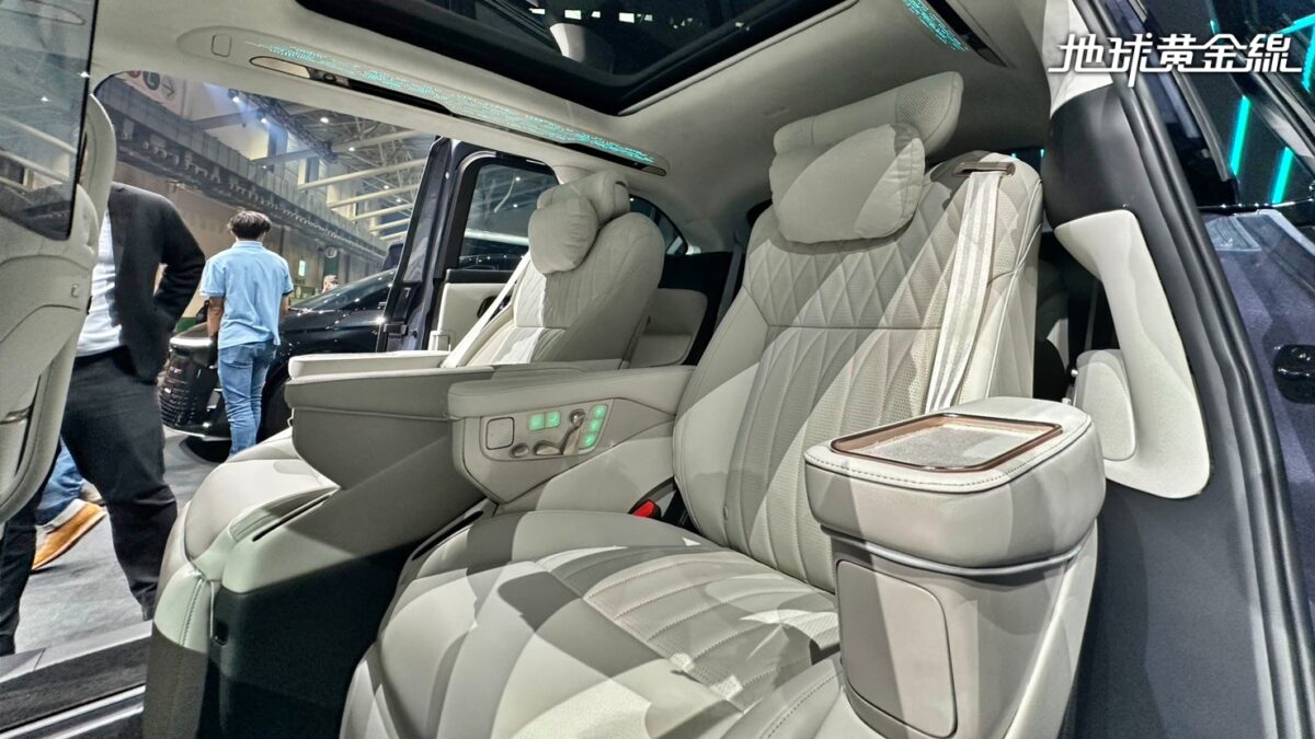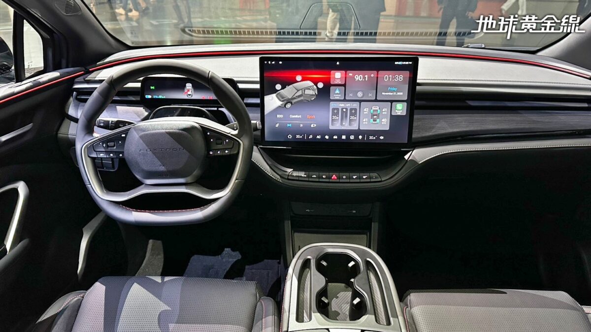 車內鋪陳則是走高質感路線,還配備延伸至副駕駛座的27吋IVI中控觸控螢幕;進到後座可以發現,第二排座椅採獨立雙座設計,並提供可收折式桌板、後座專屬螢幕與多媒體娛樂系統,以滿足企業商旅車隊與高階接待用途,也展示鴻海進軍高端電動車市場的企圖。
