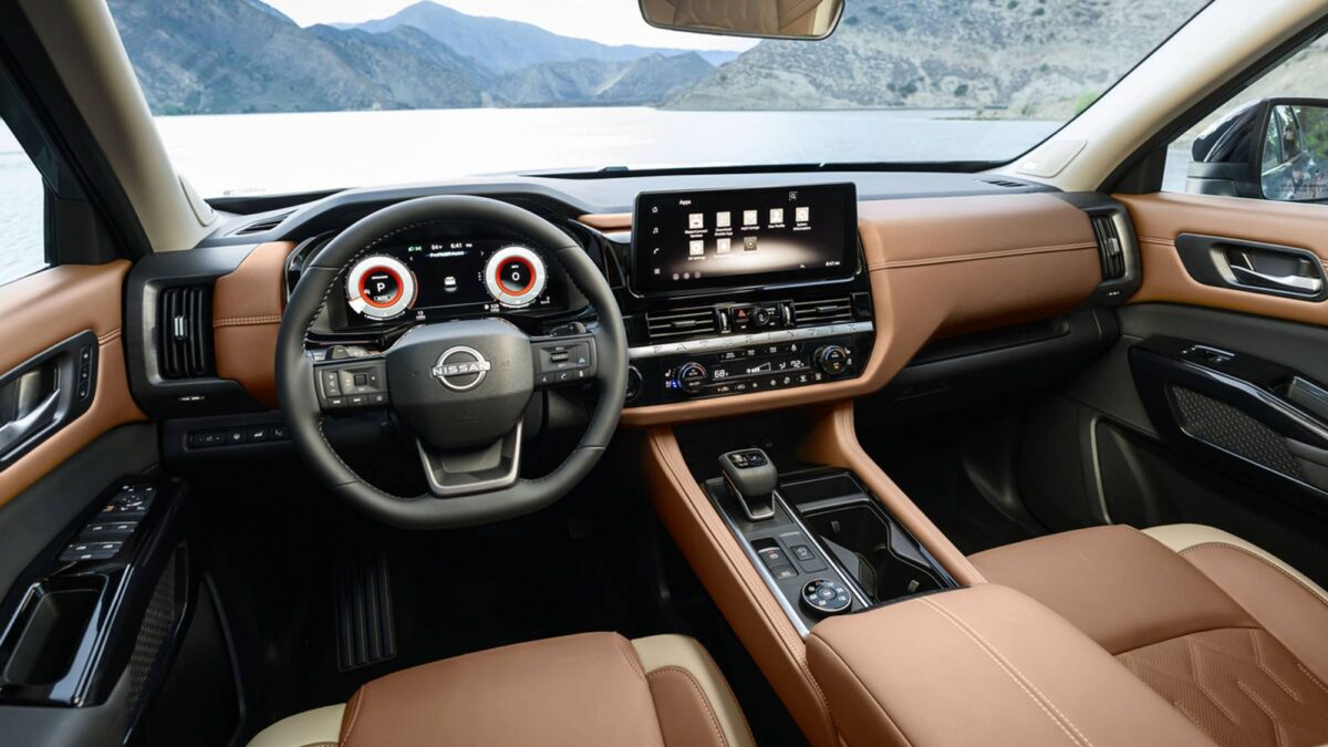雖然整體造型並未大改,但26年式Pathfinder在前後保桿皆重新修飾,前方水箱護罩改為橫向延伸、黑色無框式設計,與最新世代Kicks與Murano更為接近,看起來更寬、更俐落。後保桿與飾板也進行細節調整,使車尾更具量感。此外,全新外觀色「Baltic Teal」首度登場,並搭配全車系加入磨砂質感字徽,SL與Platinum車型則將車頂行李架由銀色改為黑色,而Platinum更換上全新20吋鋁圈、木紋飾板及全新縫線圖樣座椅,使頂規車型質感再提升。